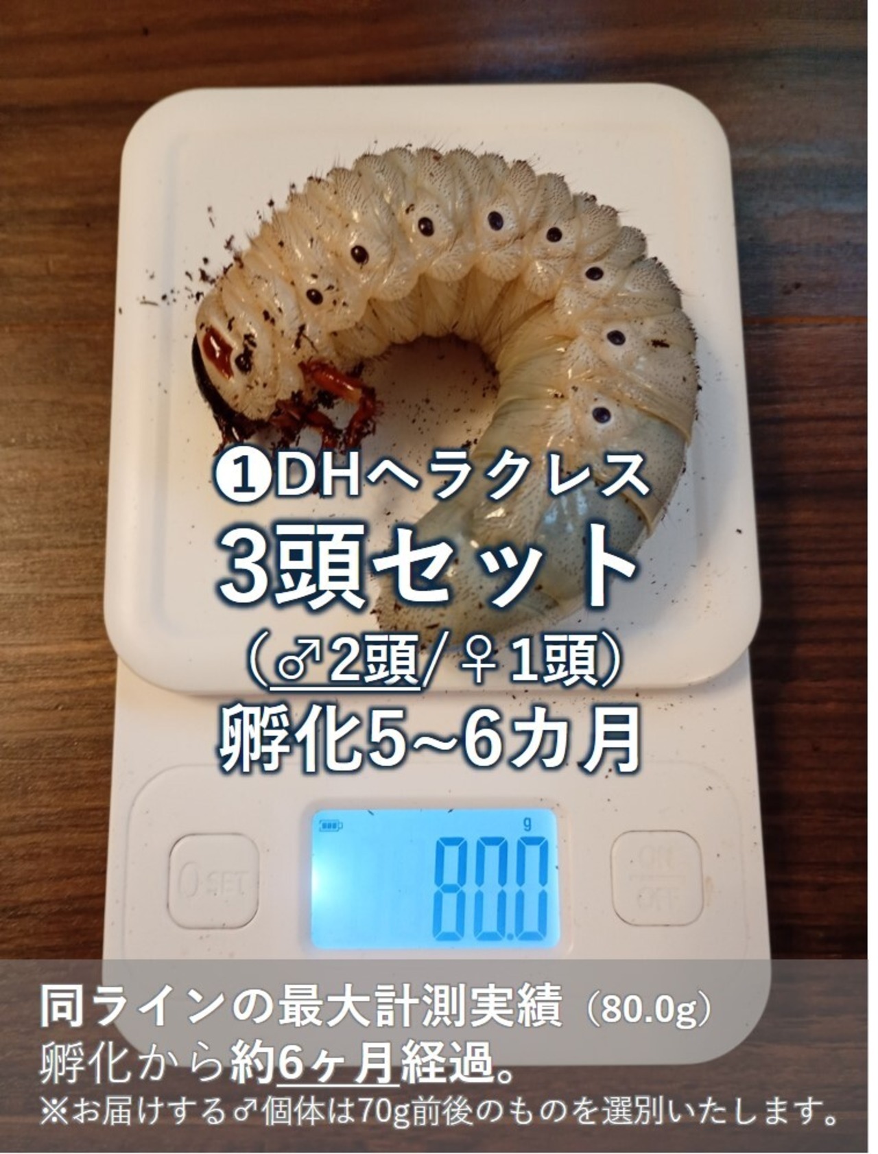 ※お届けする♂個体も、これと同等の70g前後の個体となります。